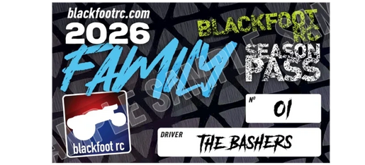The BlackfootRC Family Season Pass covers entry throughout the season for 2 Adults and 2 Children / Youth. The pass MAY NOT be used for extended family members.